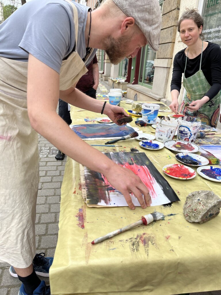 Um das Fest wieder so bunt und vielfältig wie möglich zu gestalten, laden wir euch ein, eure Kunst, egal ob Bilder, Skulpturen, Literatur, Musik o. ä., zu präsentieren. Hierzu könnt ihr uns im Rahmen einer unserer wöchentlichen Veranstaltungen, z.B. Montagsdinner, Repair Café usw., eure Werke vorbeibringen.